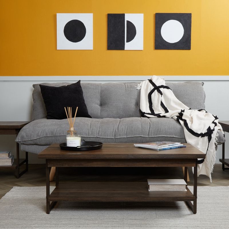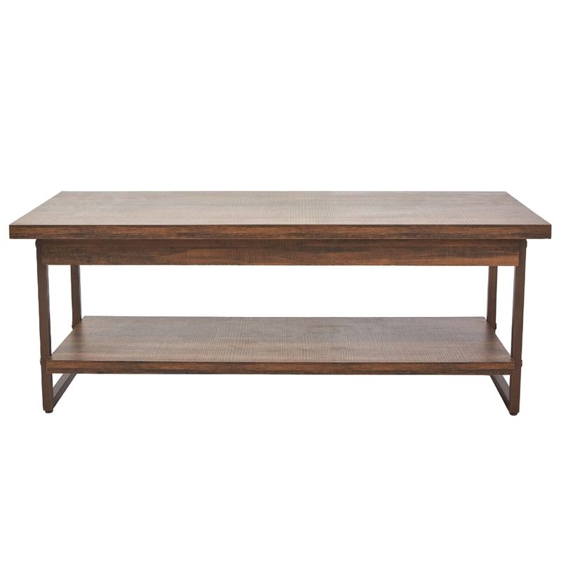 Mesa de Centro Rectangular Color Nogal con Espacio de Almacenamiento y Estructura de Madera MDF con Soporte Metálico