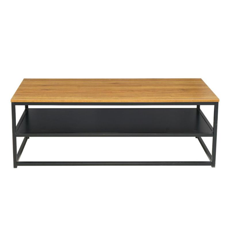 Mesa de Centro Rectangular con Tablero de MDF y Estructura Metálica Negra