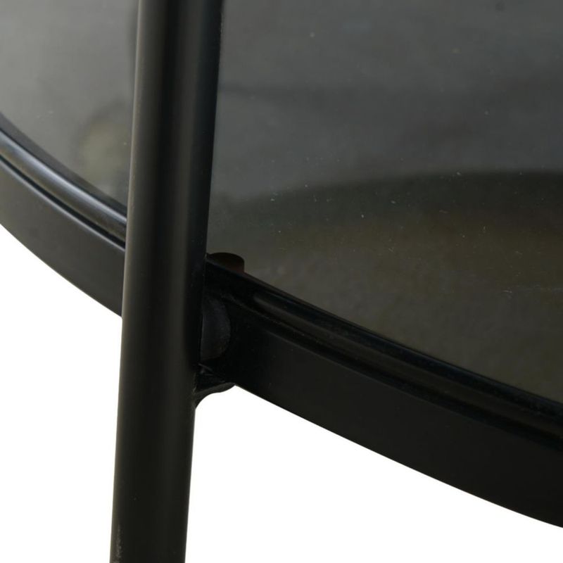 MueblesSalaMesas auxiliaresMesa de Centro Redonda de Madera MDF con Repisa de Cristal Ahumado y Base Metálica Negra