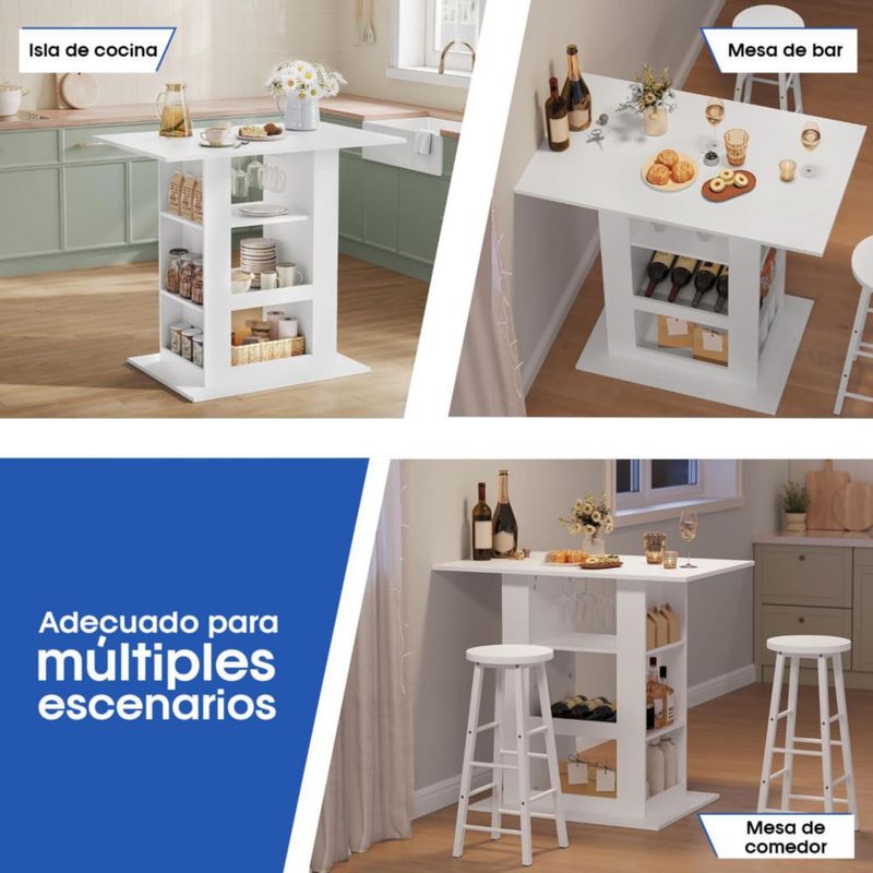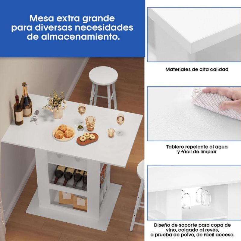 Mesa de Comedor con Estantes de Almacenamiento, Ahorro de Espacio para Cocinas, Comedores o Oficina Nomi