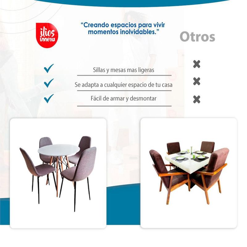 Mesa Ilios Innova Comedor Oslo Redonda Blanca 4 Sillas