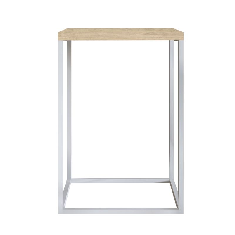 MueblesSalaMesas auxiliaresMesa Lateral Color Blanco y Madera con Estructura Metálica de Acero MDP