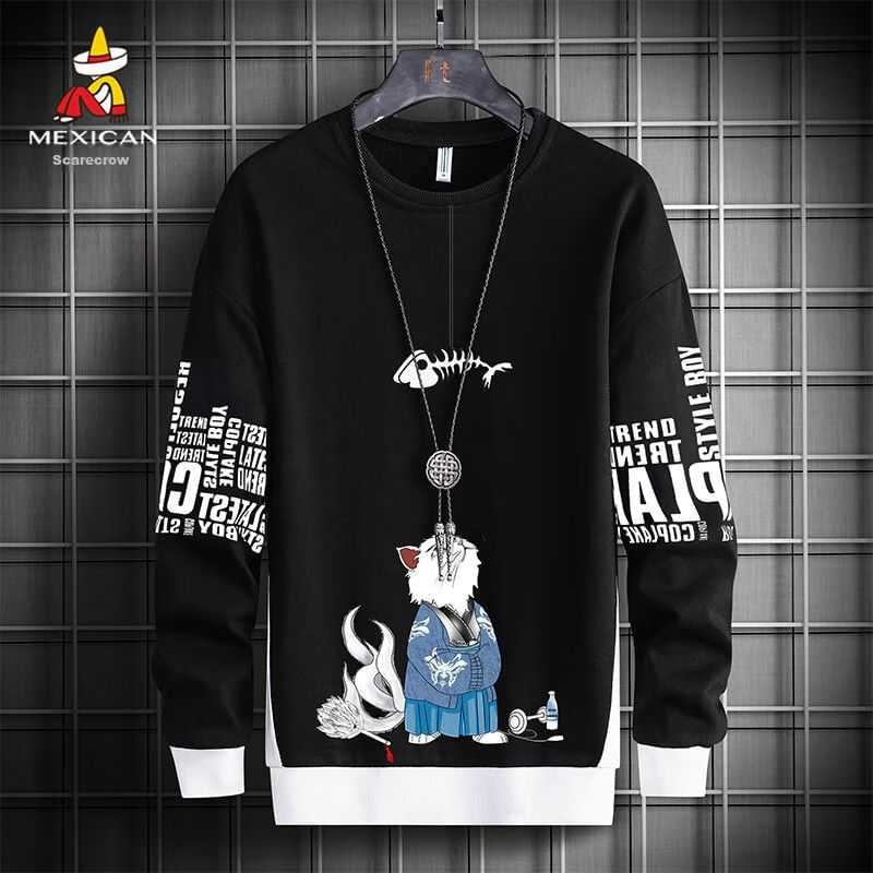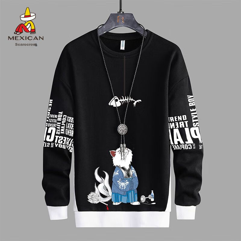 RopaRopa de CaballeroSudaderas y SuéteresMEXICAN Sudadera Holgada Cuello Redondo Negra Para Hombre