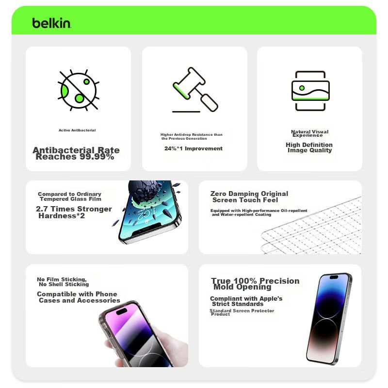 Mica Protector De Pantalla Belkin Para iPhone 14/15/16 Pro Anticaídas