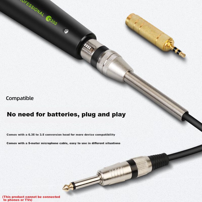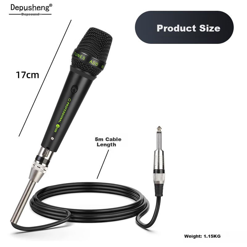 Micrófono Depusheng C350 Dinámico Cableado Con Adaptador 3.5 Mm