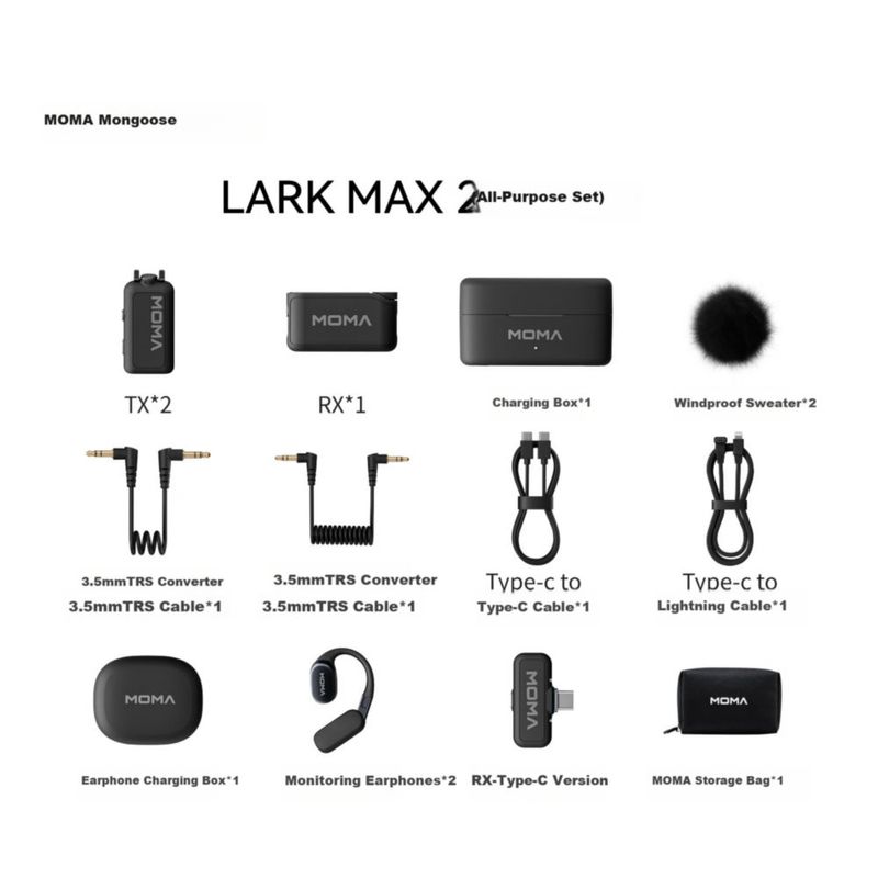 ElectrónicaAudio y equipos de sonidoMicrófonosMicrófono Moma Larkmax 2 Inalámbrico Collar Negro