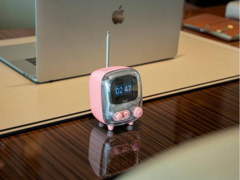 Mini bocina inalámbrica retro Divoom Tiivoo-2 con radio y diseño de píxeles (Rosa)