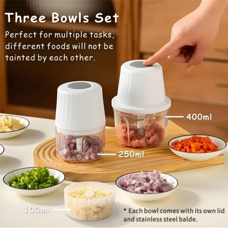 Línea blancaElectrodomésticosEspecializadosMini procesador de alimentos inalámbrico con 3 tazones (400 ml + 250 ml + 100 ml) y 6 cuchillas + 3 cuchillas + 2 cuchillas, pic