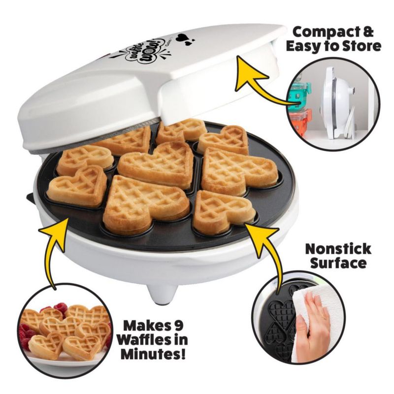 Línea blancaElectrodomésticosEspecializadosMini waflera con forma de corazón: prepara 9 waffles y panqueques con forma de corazón para el desayuno festivo con plancha eléc