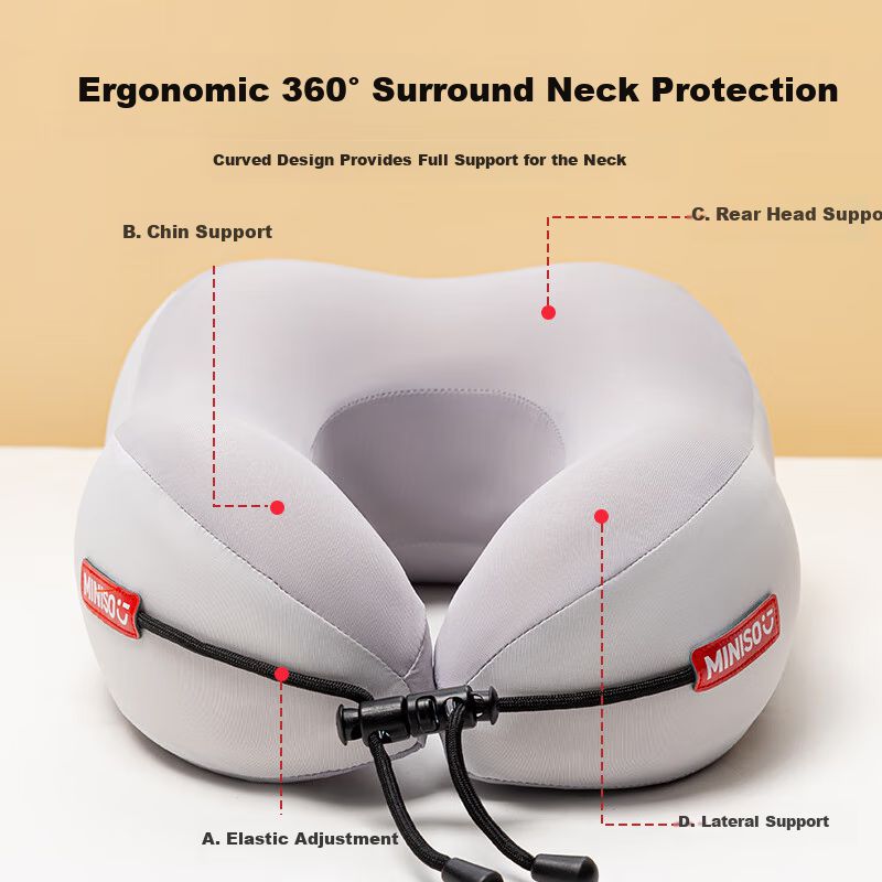 MINISO Almohada Memory Foam en Forma de U para Cuello, Portátil para Viaje