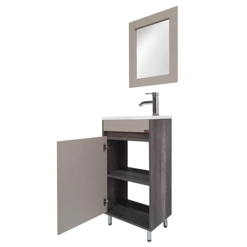Mueble para baño Miró kit 4 en 1 con gabinete lavabo monomando y espejo medidas 47x32x87 acabado Lombardía diseño moderno