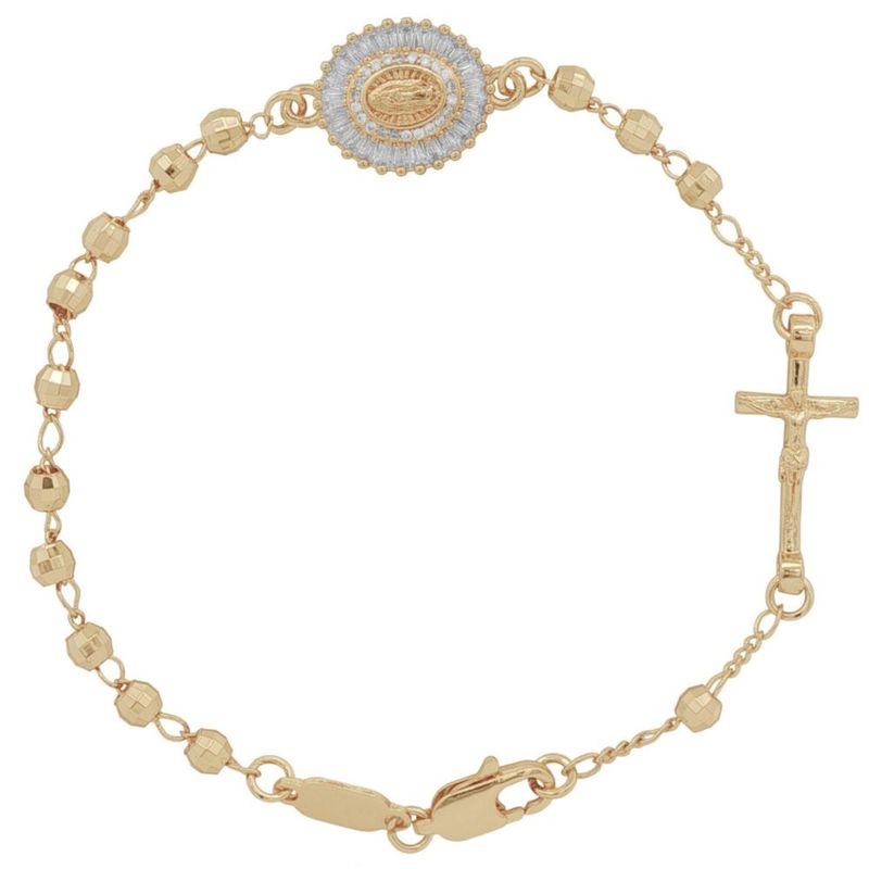 Moda y accesoriosJoyeríaPulserasMisterio Vírgen de Guadalupe bolitas diamantadas 19cm Chapa de Oro 18K EH120