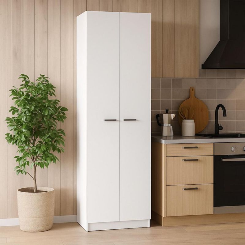 MueblesMuebles de cocinaAlacenas y DespenserosMOBI Alacena de Madera para Cocina Amapola - 2 Puertas 4 Estantes Color Blanco - Largo 60cm x Alto 180cm - Mueble para Almacenamiento de Despensa