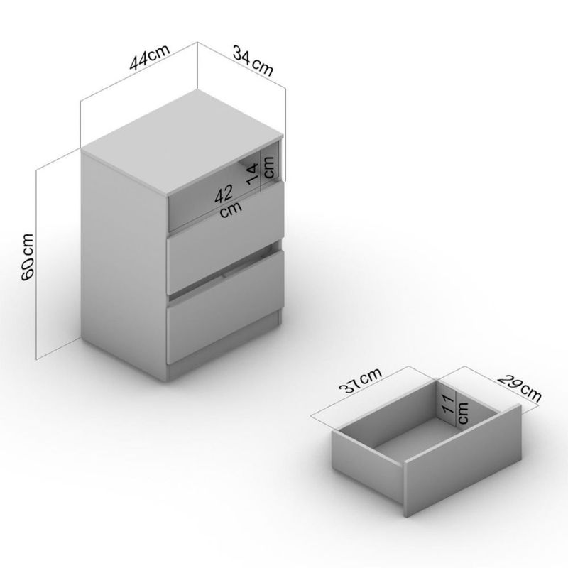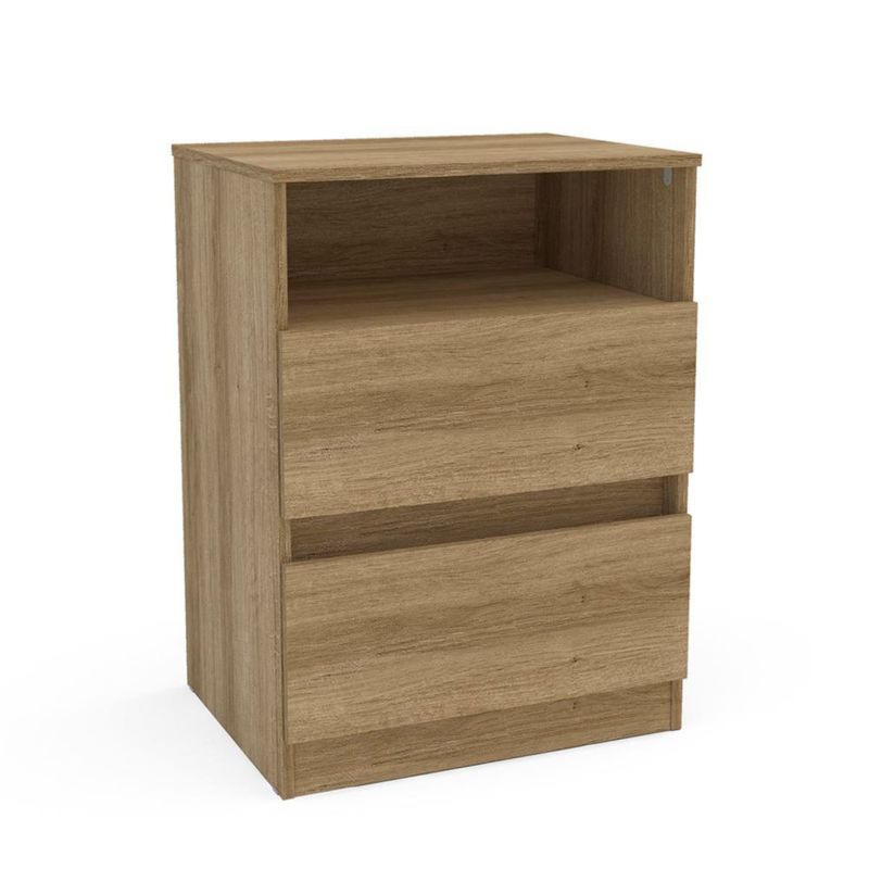 MOBI Buró para Recámara Contemporáneo Mumbai - 2 Cajones Color Lámina Miel - Largo 44 cm - Alto 60 cm - Mesa de Noche de Madera - Mueble Auxiliar
