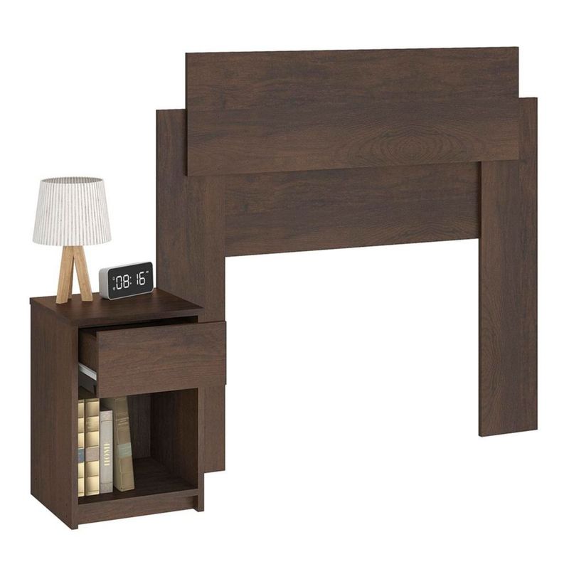 MOBI Cabecera Individual Vera con buró de madera – Color Rustico - Largo 100cm x Alto 104cm – Recámara