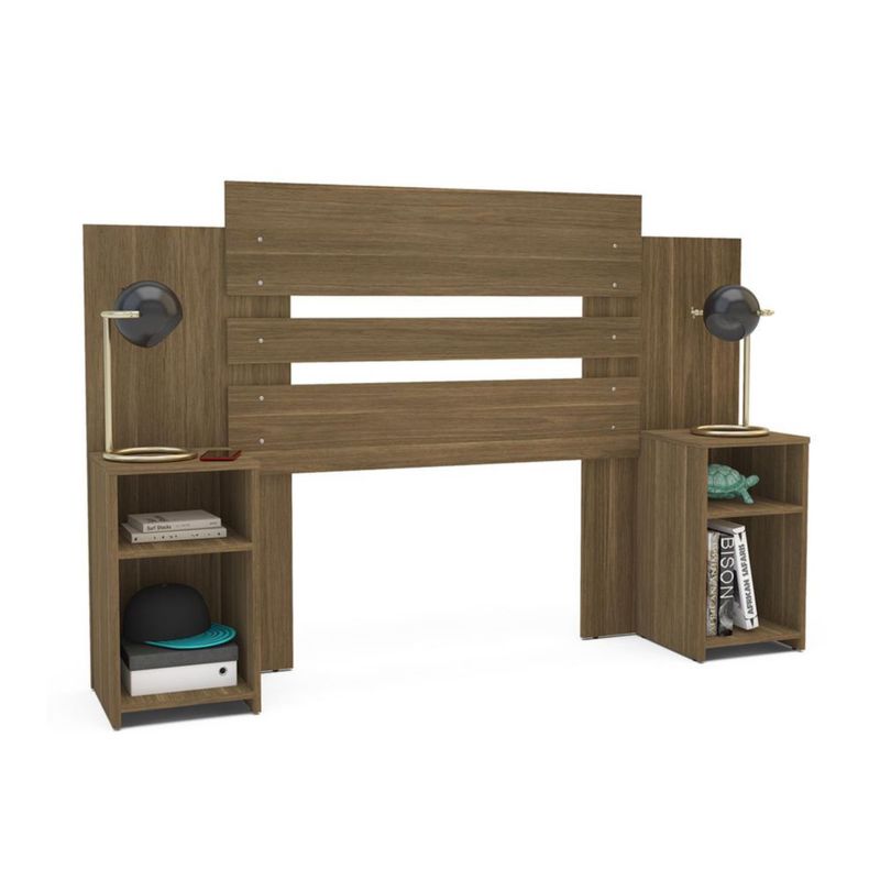 MOBI Cabecera Individual Verona – Respaldo de Madera Color Avellana – Dos Buros Empotrados