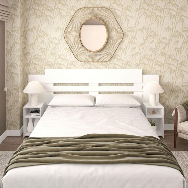 MOBI Cabecera Queen Verona – Respaldo de Madera Color Blanco - Dos Buros Empotrados