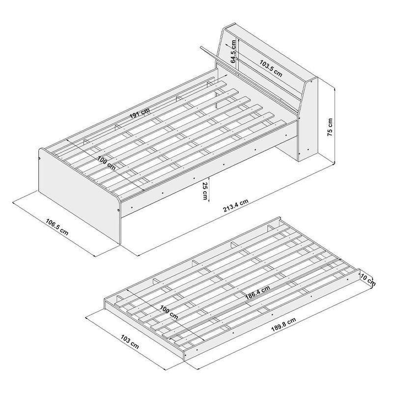 MOBI Cama Doble Individual para Recámara de Madera Windsor -Color Blanco - Largo 213cm x Alto 75cm – No incluye Colchón