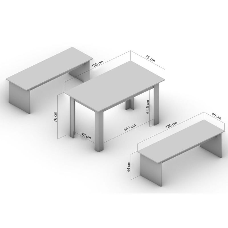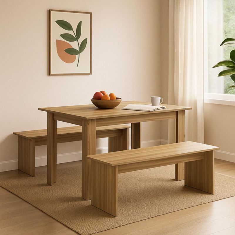 MueblesComedores y AntecomedoresMesasMOBI Comedor 2 Bancas de Madera Madrid - Juego de Mesa Rectangular Color Castaño - Largo 135cm x Alto 76cm – Ideal para Hogar o Cocina