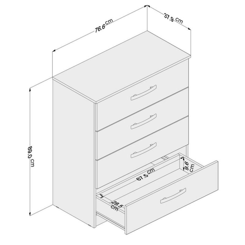 MueblesRecámaraCajoneras y CómodasMOBI Cómoda Cajonera de Madera para Recámara Contemporáneo Cerdeña - 4 Cajones - Color Avellana