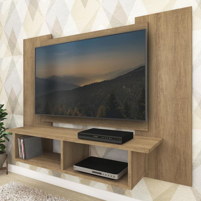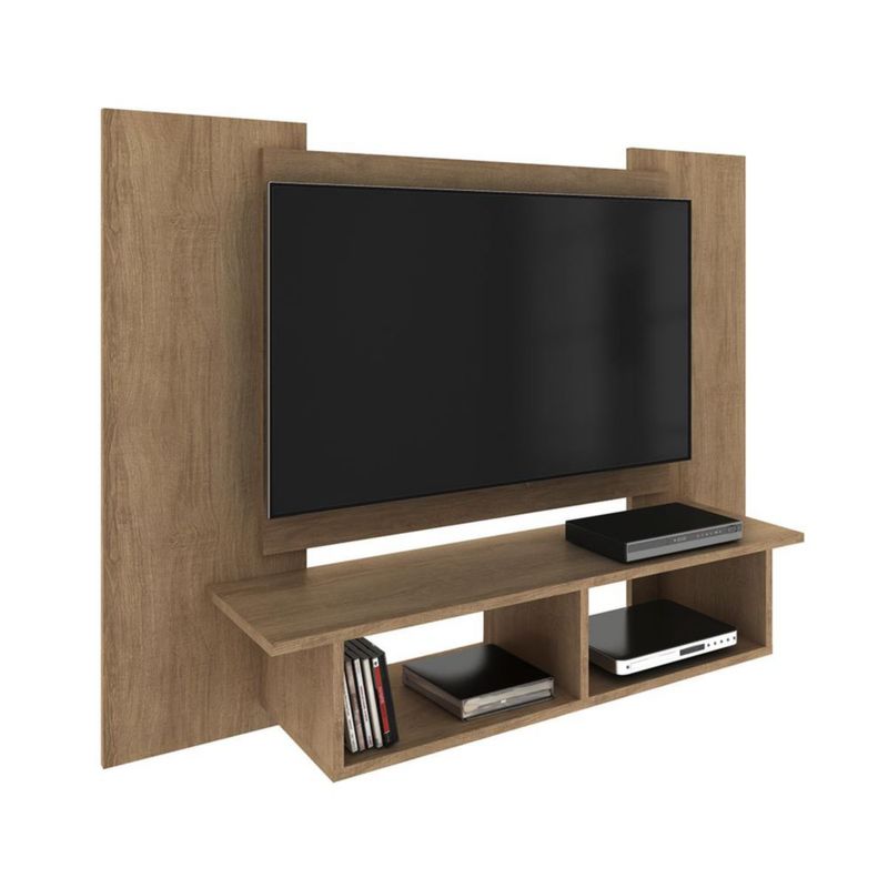 MOBI Mesa para TV Empotrado de Madera Contemporáneo Lujan - 2 Estantes Color Miel - Largo 120cm x Alto 90cm – Mueble para Televisión