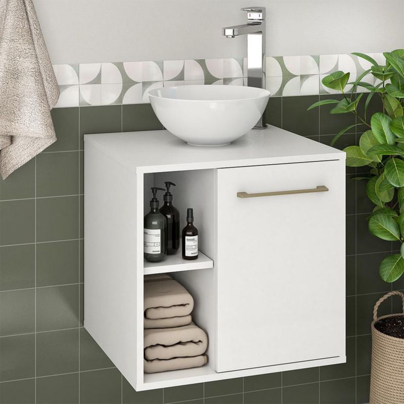MueblesMuebles de BañoGabinetesMOBI Mueble de Baño Flotante Mendoza – 1 Puerta 3 Entrepaños Color Blanco - Largo 50cm x Alto 48cm – Incluye Jaladera Metálica