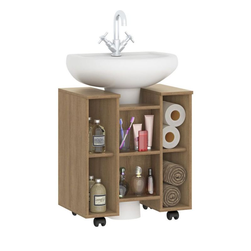 MOBI Mueble de Baño Limay – 1 Puerta 3 Entrepaños Color Miel - Largo 55cm x Alto 63cm – Incluye Ruedas