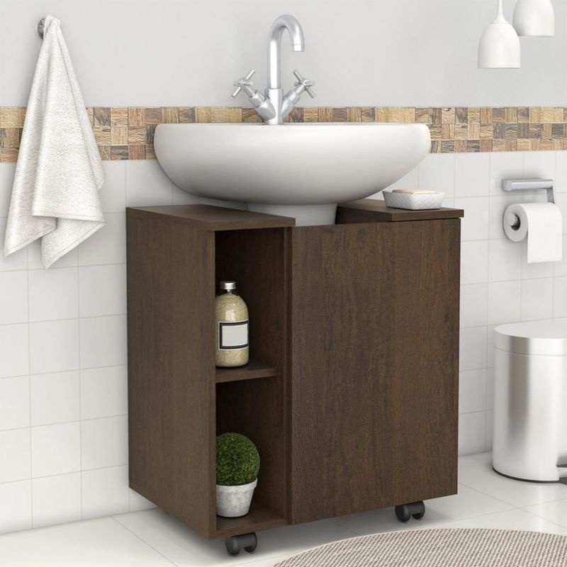 MueblesMuebles de BañoGabinetesMOBI Mueble de Baño Limay – 1 Puerta 3 Entrepaños Color Rustico - Largo 55cm x Alto 63cm – Incluye Ruedas