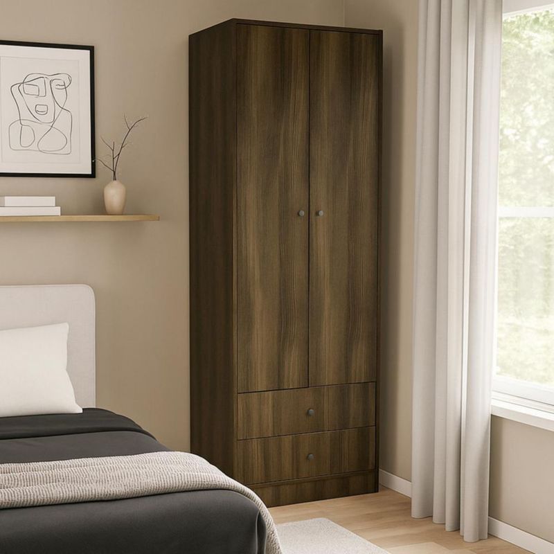 HogarClosets y LavanderíaClosets ArmablesMOBI Ropero Closet Armario Armable de Madera Dalia – 2 Puertas 2 Cajones Color Tabaco - Largo 62cm x Alto 180cm – Organizador para Recámara