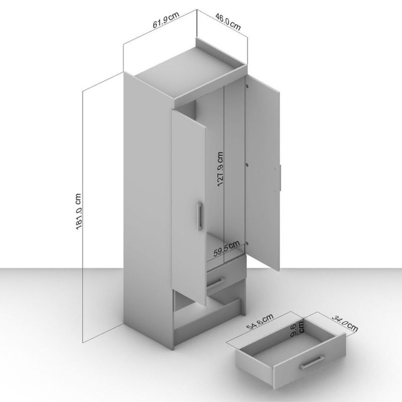 HogarClosets y LavanderíaClosets ArmablesMOBI Ropero Closet Armario Armable de Madera Fermont – 2 Puertas 2 Cajones Color Tabaco- Largo 62cm x Alto 181cm – Organizador para Recámara
