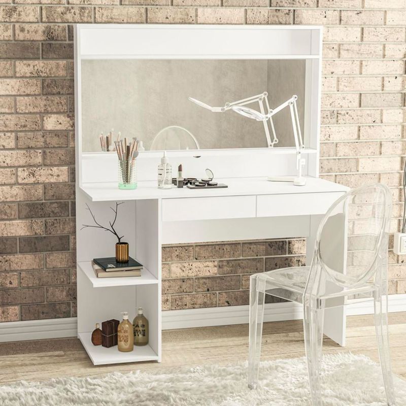 MOBI Tocador de Madera con Espejo para Maquillaje Kahlo - 2 Cajones 2 Repisas Color Blanco - Largo120cm x Alto 150cm – Vanity Mueble para Recámara