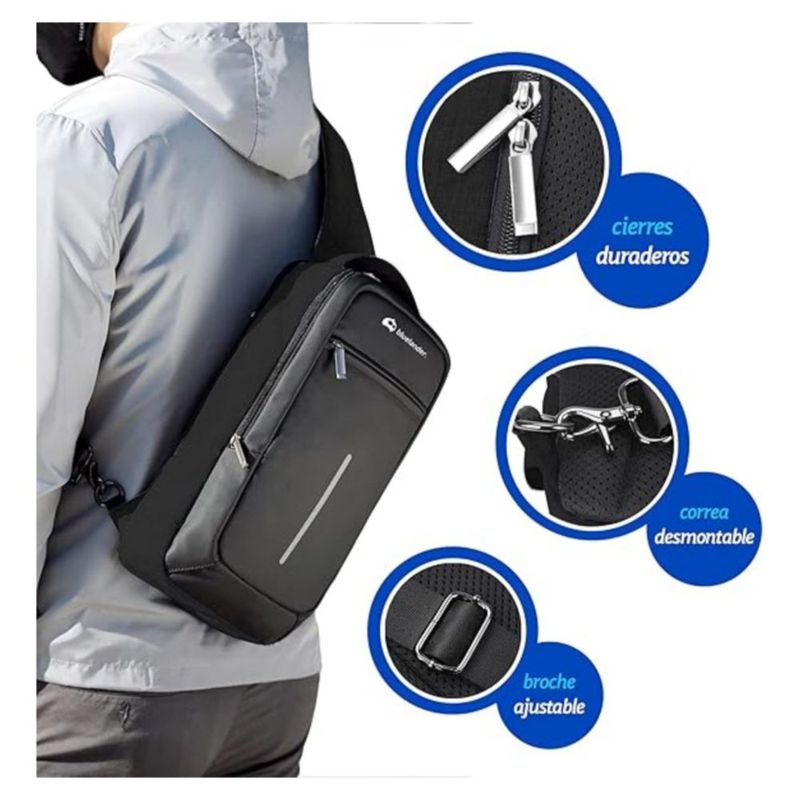 Mochila Antirrobo Cruzada Bluelander, Bandolera con puerto USB