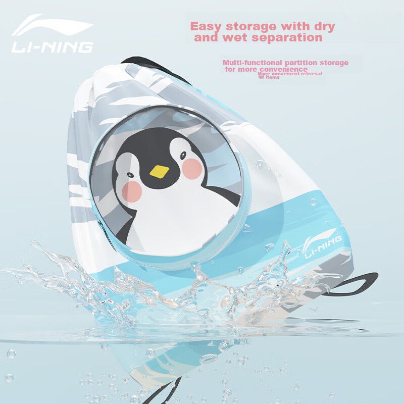 Mochila De Natación Li-Ning 7072 Impermeable Azul Para Niños