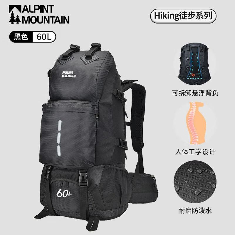 Moda y accesoriosMochilasMochilas DeportivasMochila de senderismo ALPINT MOUNTAIN 60L de fibra de poliéster Negra Unisex
