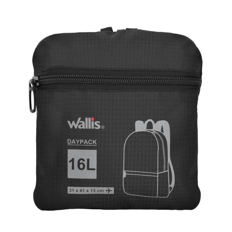Mochila de viaje plegable 16 L con funda, marca Wallis, color negro