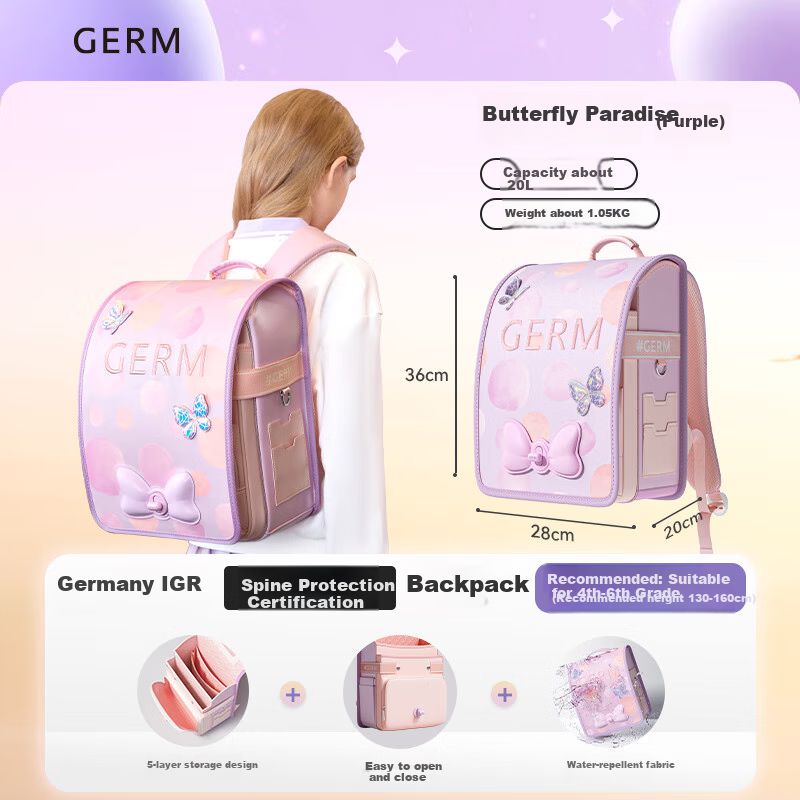 Mochila escolar GERM Butterfly Paradise ligera de poliéster Rosa para niña