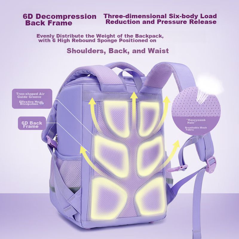 Mochila escolar Herder ligera de material compuesto Morado para niña