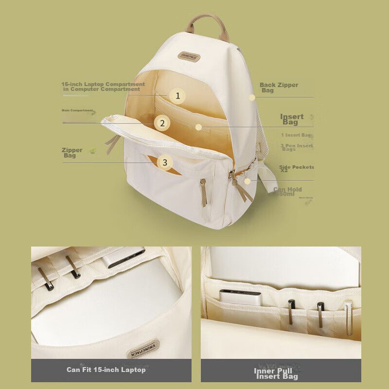 Mochila escolar V.NINE Obsidiana Negra de tela resistente al agua para niña