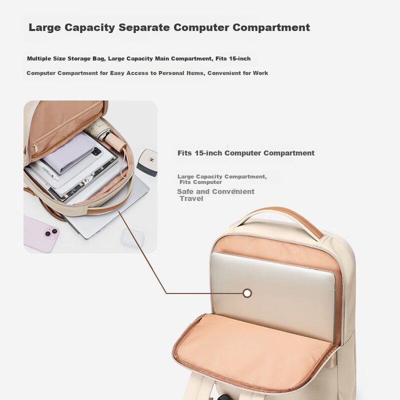 Mochila GOLF Minimalista para laptop de 15 pulgadas de tejido durazno para mujer