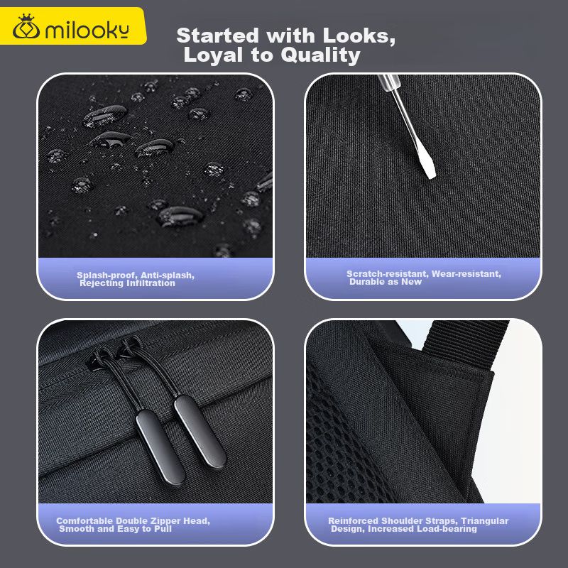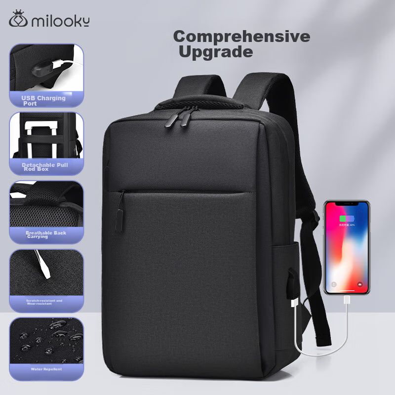 Mochila para laptop Milooky 17.3" de tejido Oxford Negro para unisex