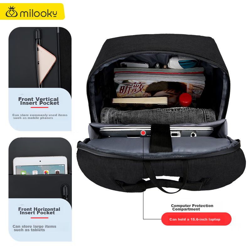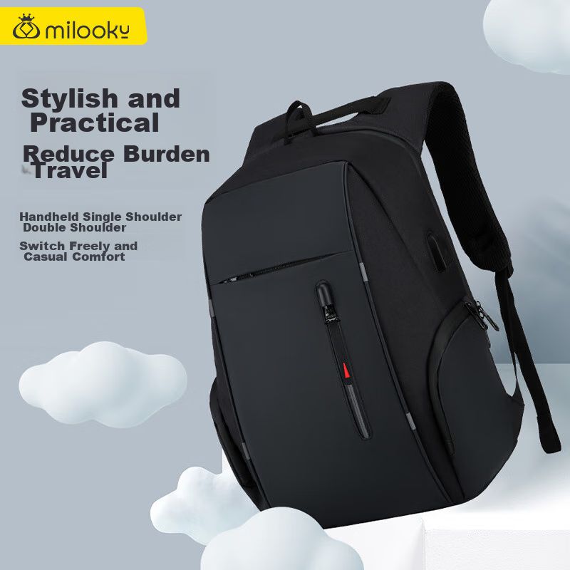 Mochila para laptop Milooky de tela resistente Negra para unisex