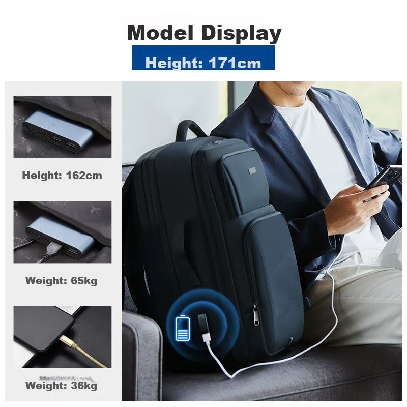 Mochila para laptop OIWAS Oficina Móvil 17.3" de nylon balístico Negra unisex