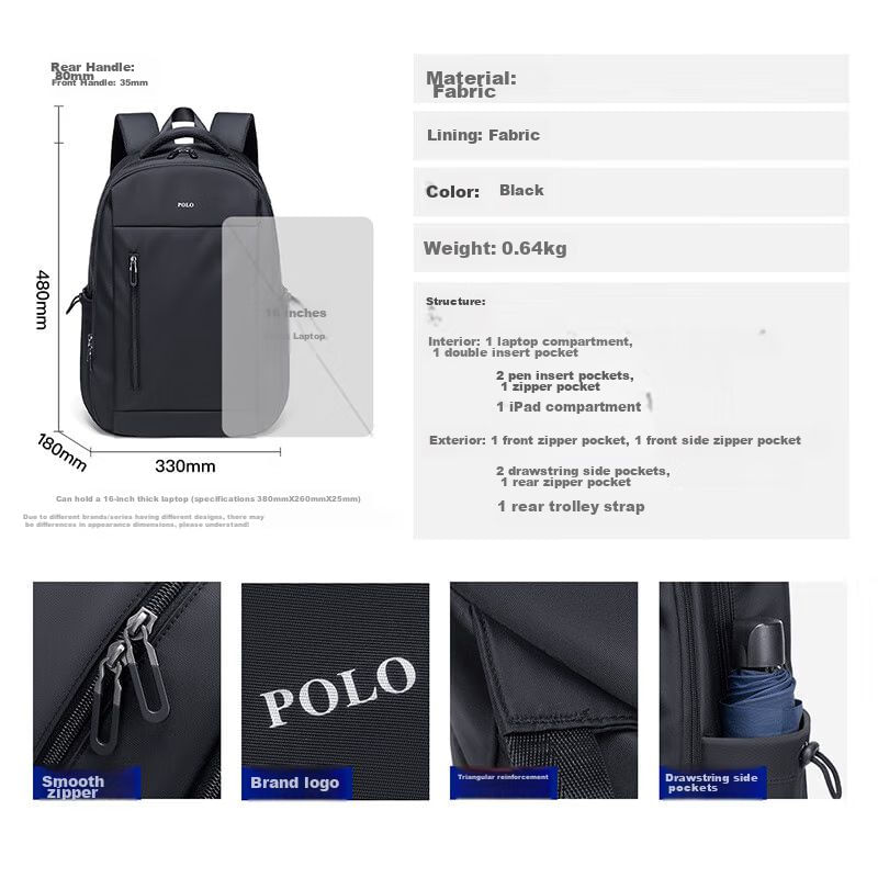 Mochila POLO para laptop Negra para hombre