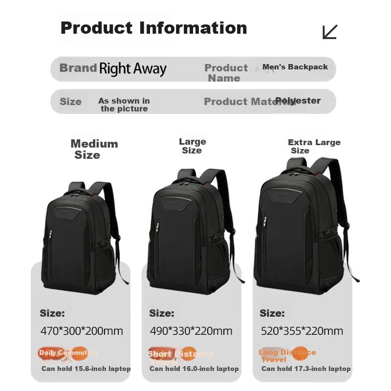 Mochila para laptop Right Away de poliéster Negra para hombre
