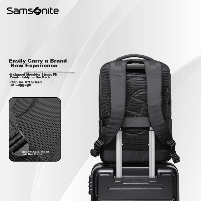Mochila para laptop Samsonite CAPER de tela y cuero microfibra Negra/Gris/Azul para unisex