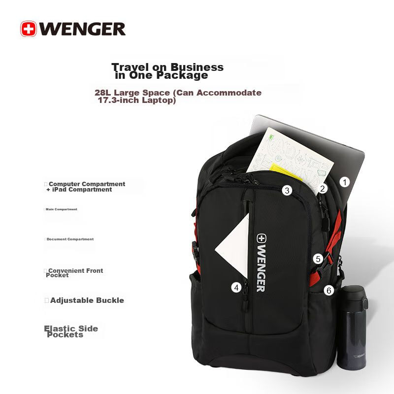 CómputoAccesorios y periféricosMochilas y MaletinesMochila para laptop WENGER S868309048B resistente al agua Negra para unisex