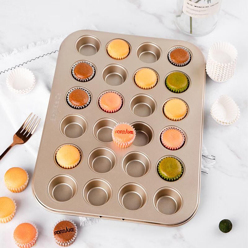 HogarCocinaReposteríaMolde para mini Muffins 24 Cavidades Dorado