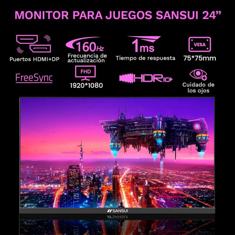 Monitor de Computadora Gaming 24" Sansui ES-G24F4M Full HD (Cable HDMI incluido)