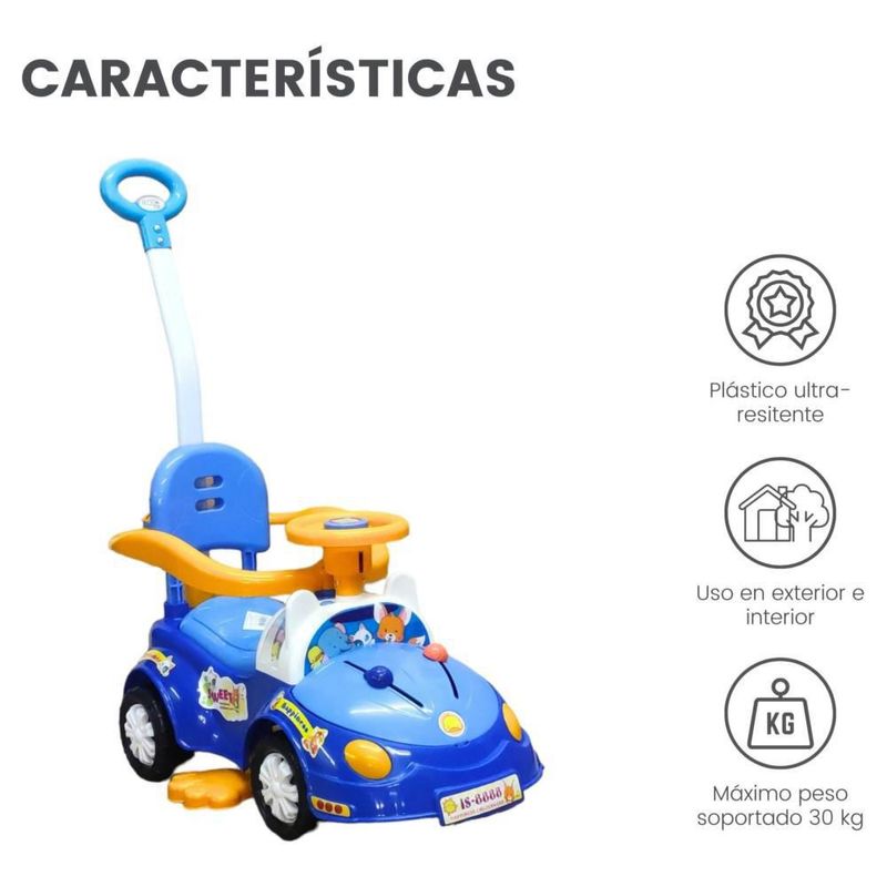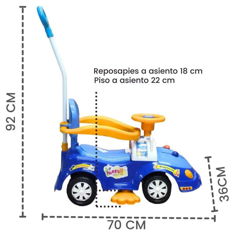 Montable Correpasillos con Baston Sonido,Luz,Cajuela Azul