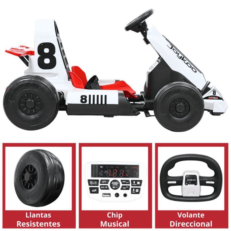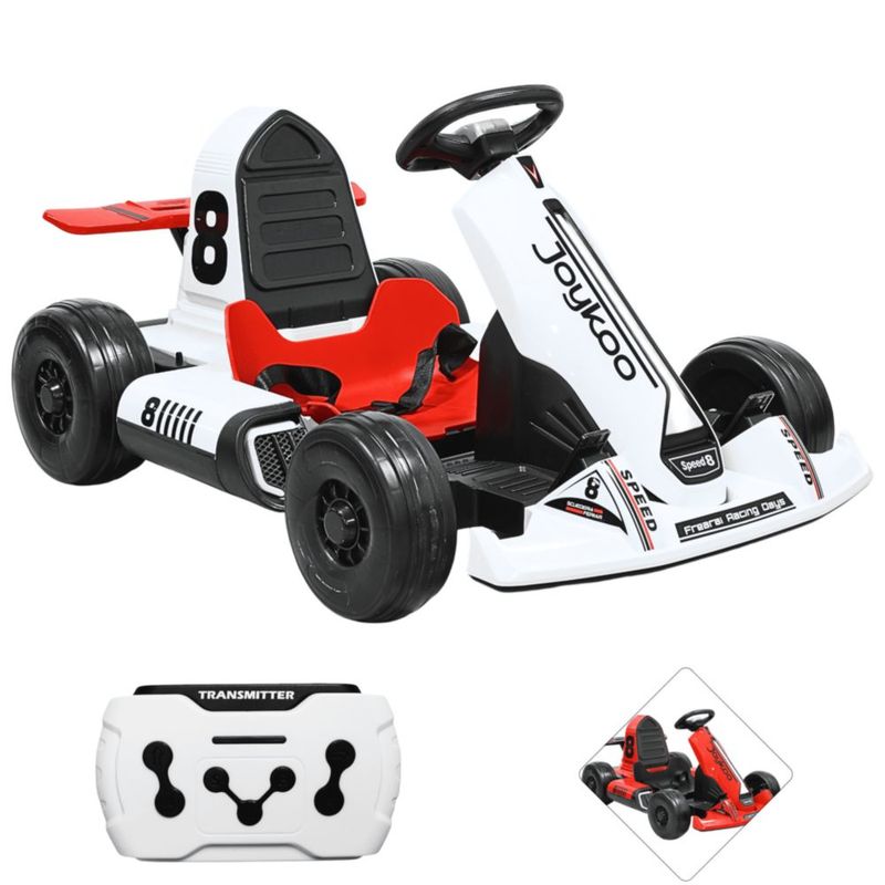 Bebés y juguetesJuguetesMontablesMontable Eléctrico Go Kart para Niños Largo Ajustable Control Remoto Batería Recargable 12V Luces Sonido Bluetooth Soporta 80 kg - Blanco
